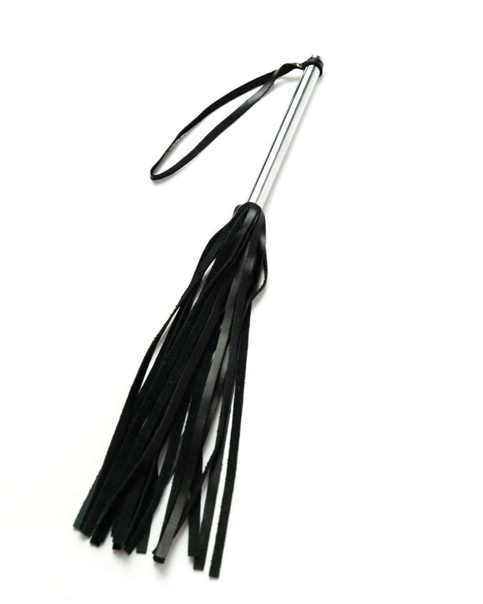 ФЛОГГЕР ИЗ ЧЕРНОЙ КОЖИ С ХРОМИРОВАННОЙ РУЧКОЙ, арт. CH-4016